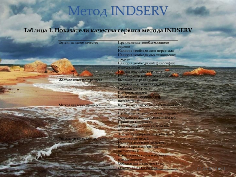 Таблица 1. Показатели качества сервиса метода INDSERV