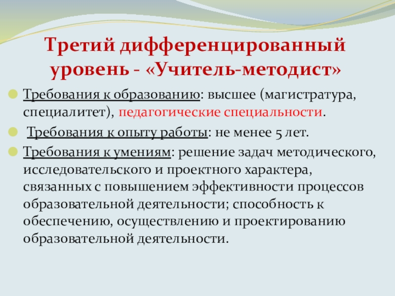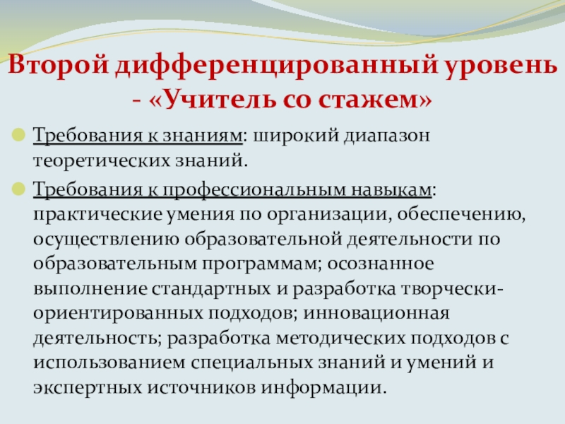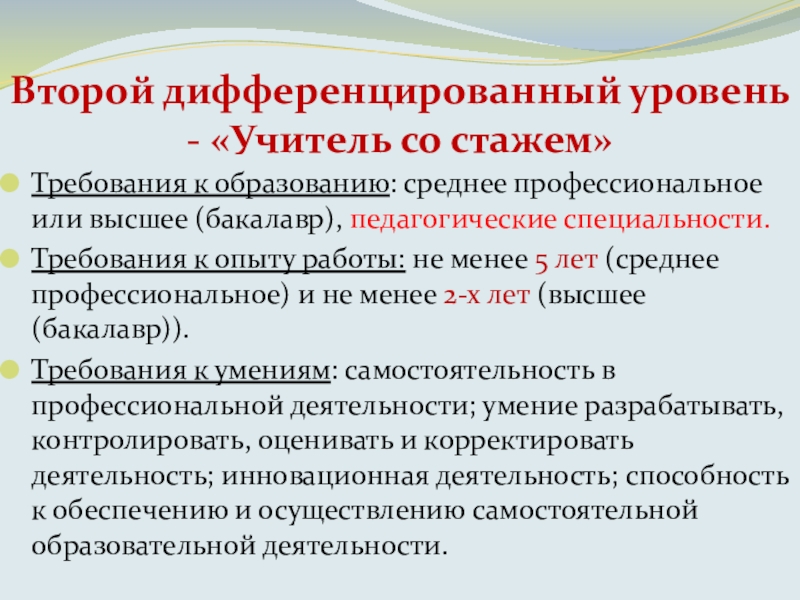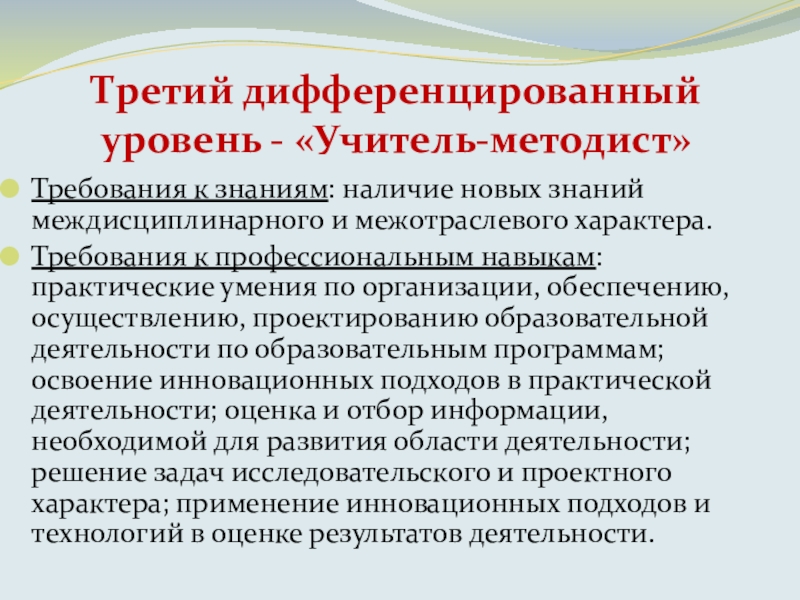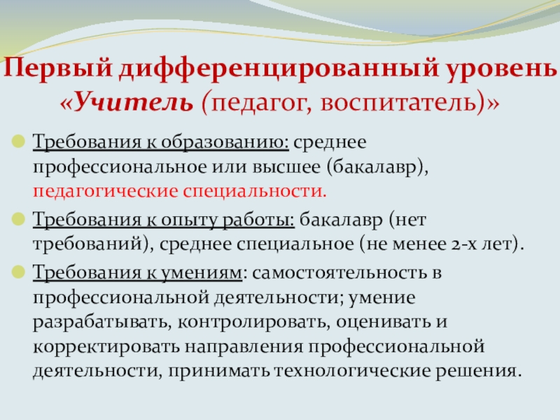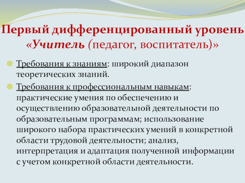 Первый дифференцированный уровень «Учитель (педагог, воспитатель)»