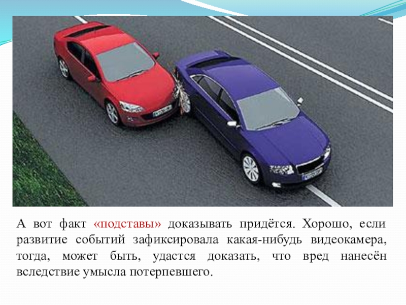 Слайд 20А вот факт «подставы» доказывать придётся. Хорошо, если развитие событий зафиксировала