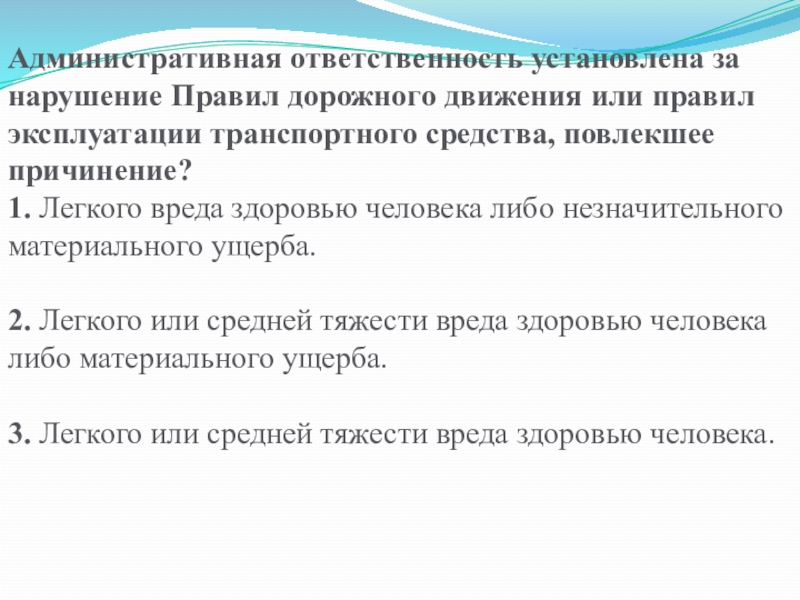 1. Легкого вреда здоровью человека либо незначительного материального ущерба.
