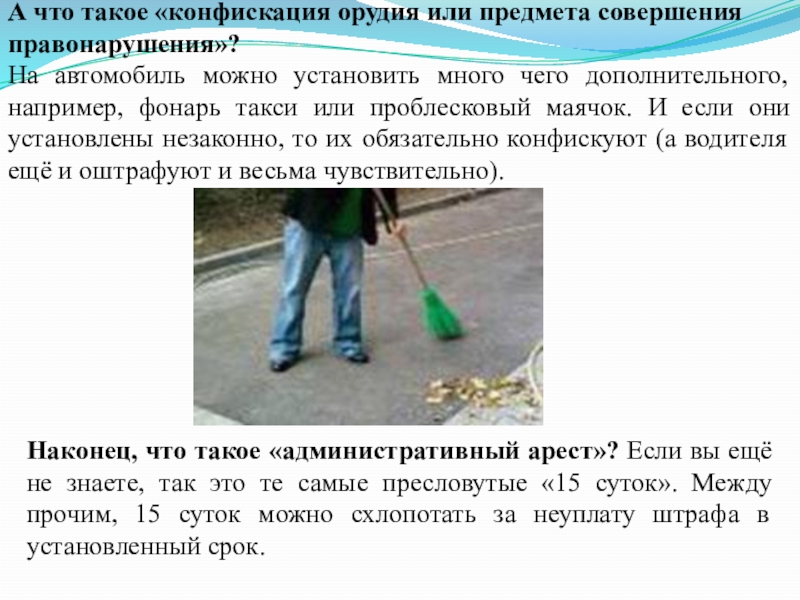 Слайд 14А что такое «конфискация орудия или предмета совершения правонарушения»?