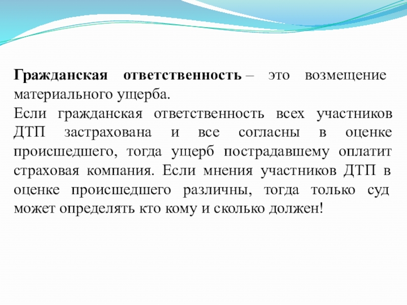 Слайд 9Гражданская ответственность – это возмещение материального ущерба.