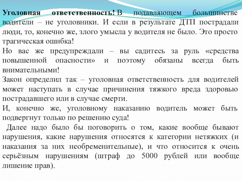 Слайд 16В каких случаях водители привлекаются к уголовной ответственности за нарушение Правил?