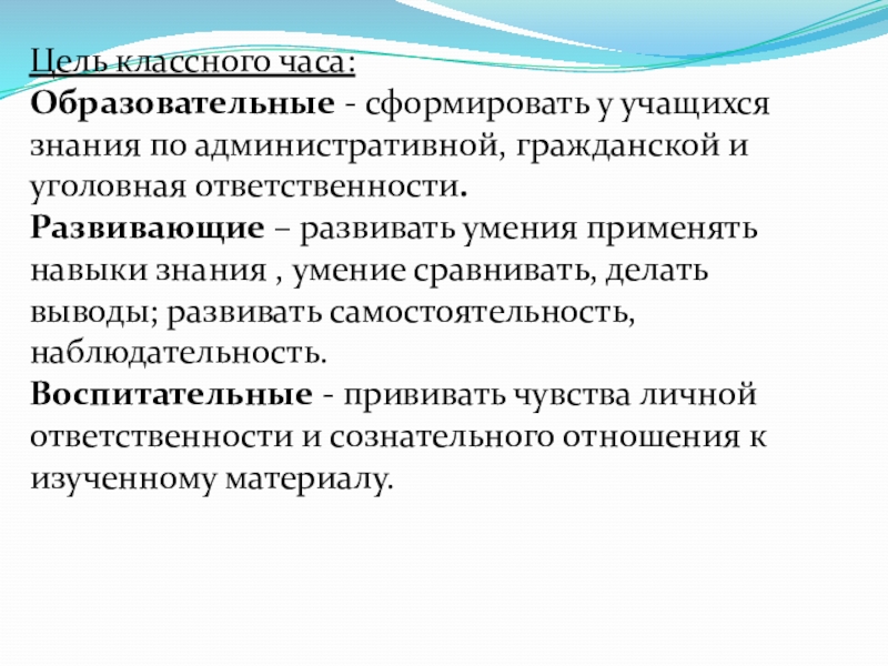 Образовательные - сформировать у учащихся знания по административной, гражданской