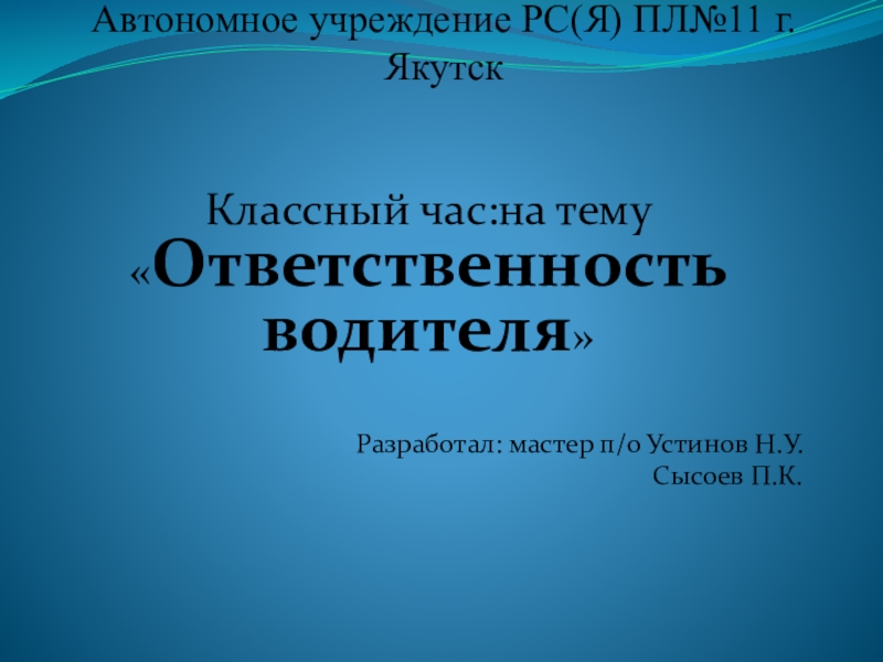 Слайд 1Автономное учреждение РС(Я) ПЛ№11 г.Якутск