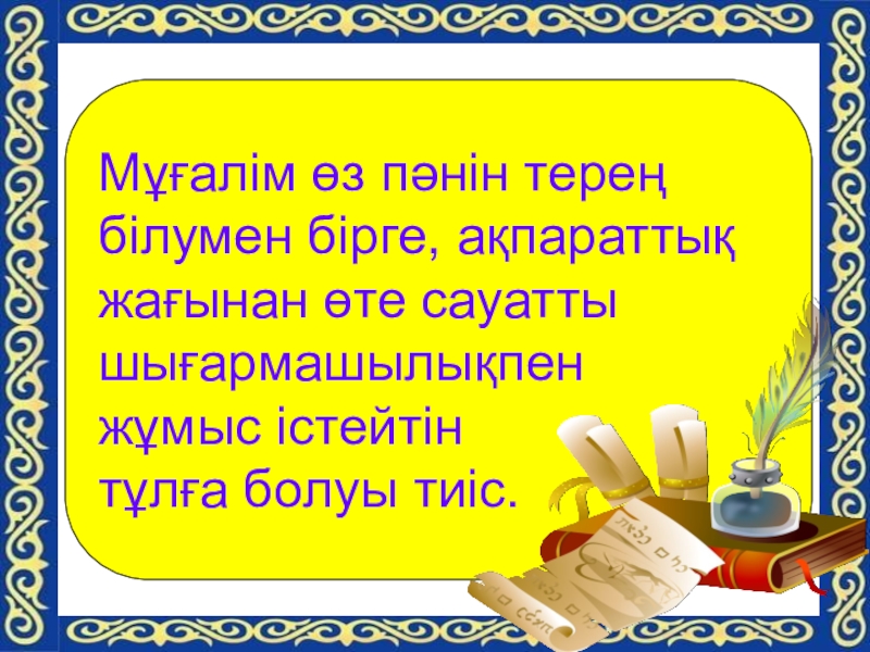 Слайд 3Мұғалім өз пәнін терең