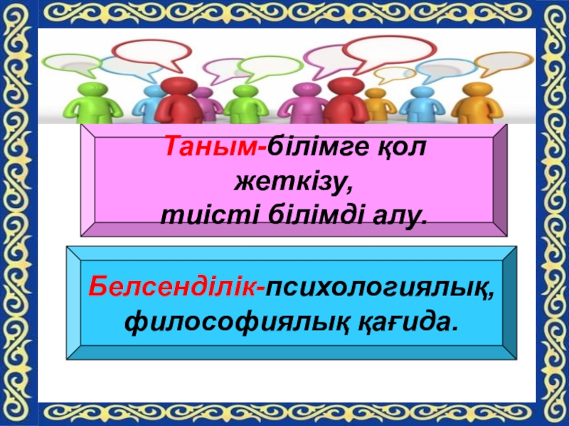 Слайд 14Таным-білімге қол жеткізу,