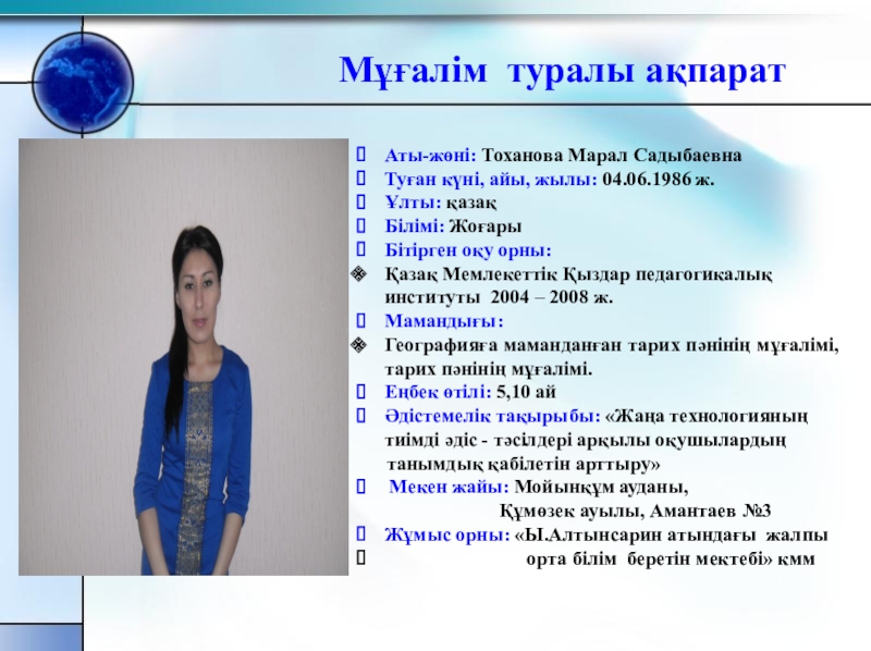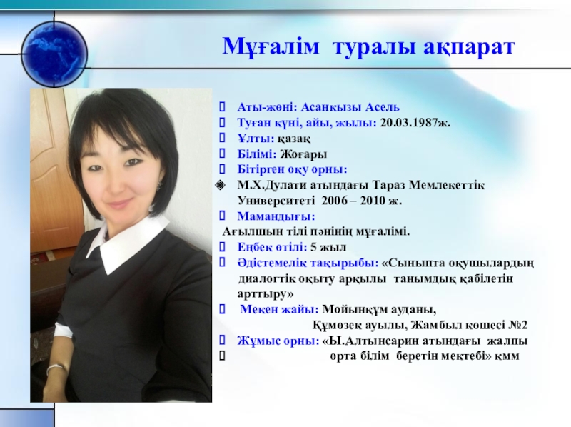 Ағылшын тілі пәні мұғалімі: Асанкызы Асель
