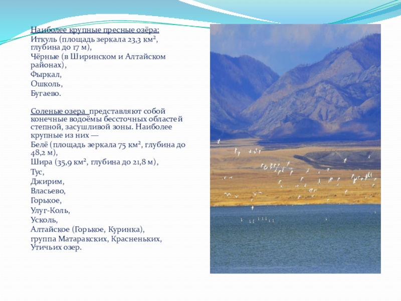 Озёра Хакасии — природные водоемы в котловинах, заполненные в пределах озёрного