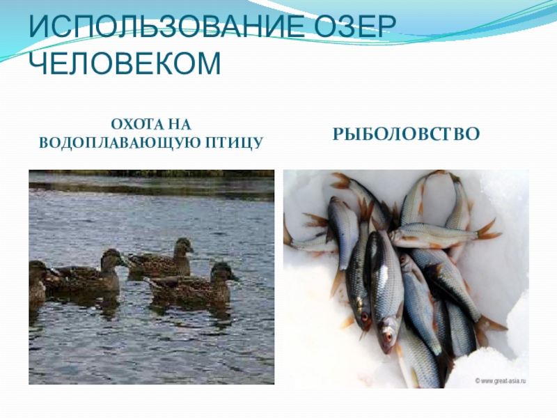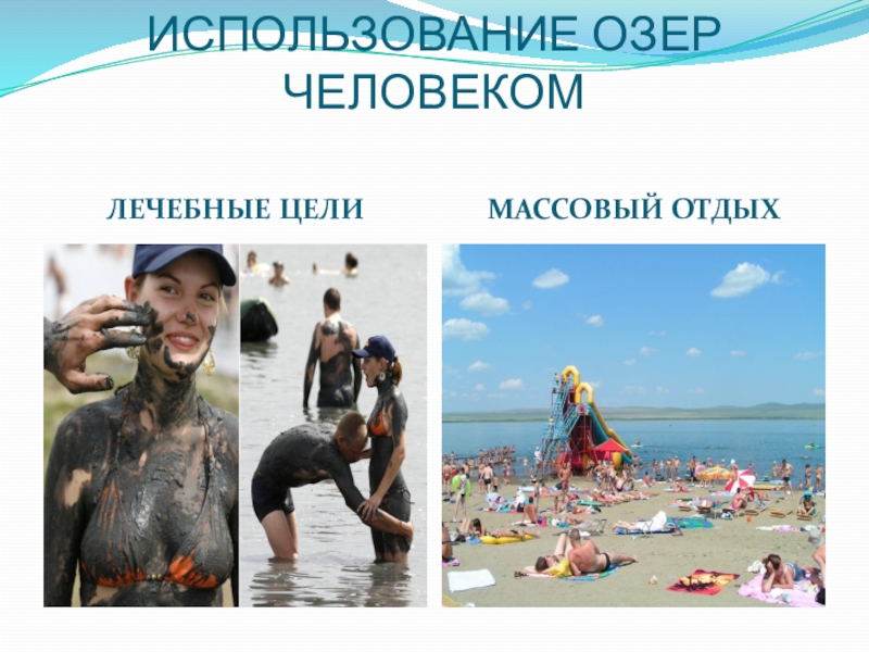 Слайд 5ИСПОЛЬЗОВАНИЕ ОЗЕР ЧЕЛОВЕКОМ