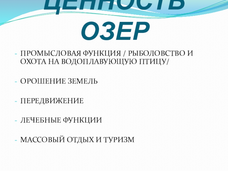 Слайд 4ЦЕННОСТЬ ОЗЕР