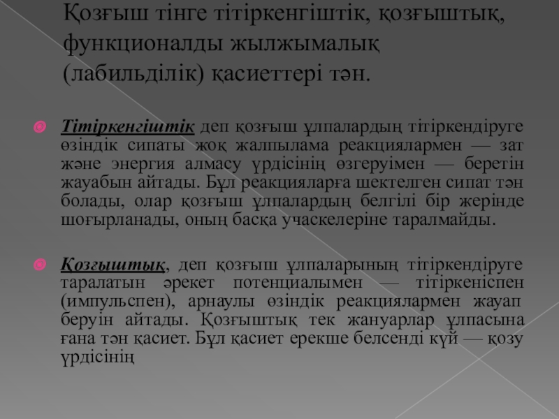 Қозу деп тітіркендірудің нәтижесінде жеке ұлпалар мен мүшелердің өзіне тән әрекетті атқаратындай белсенді жағдайға келуін айтады. Қозу түрлі физика-химиялық, функционалдық өзгерістер жиынтығынан тұратын күрделі биохимиялық реакция.