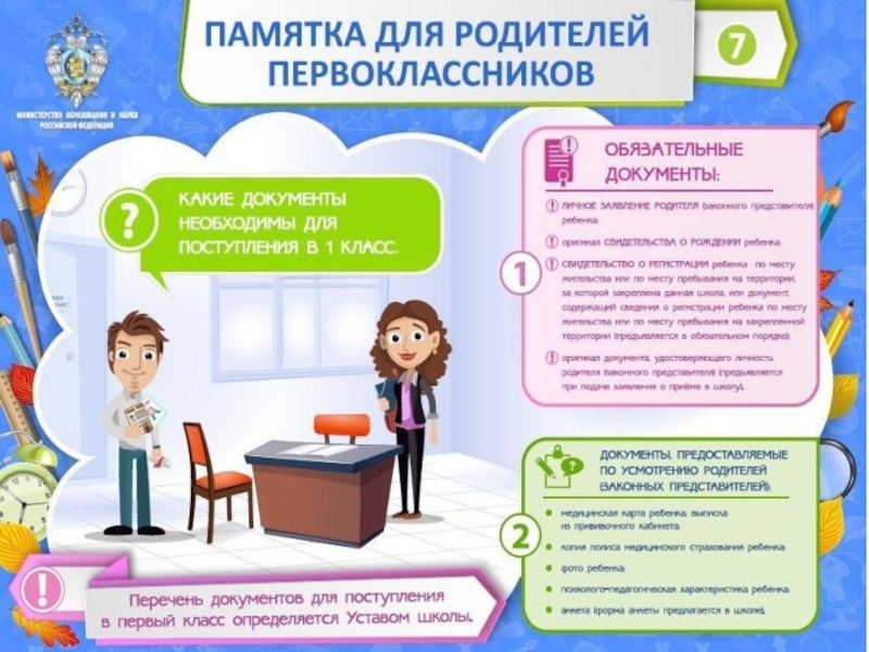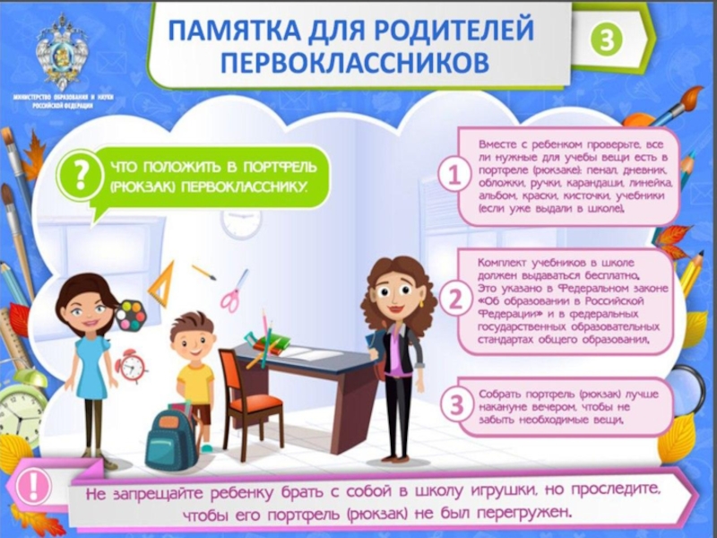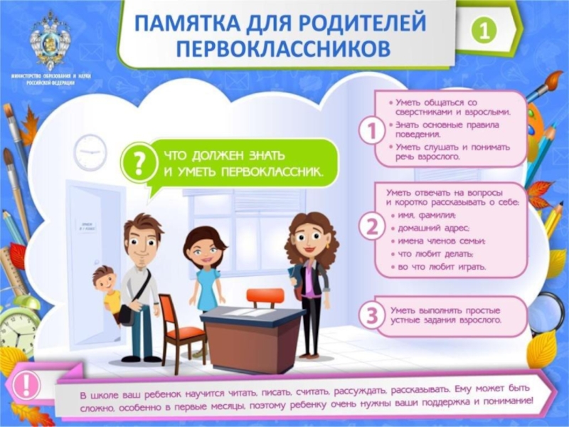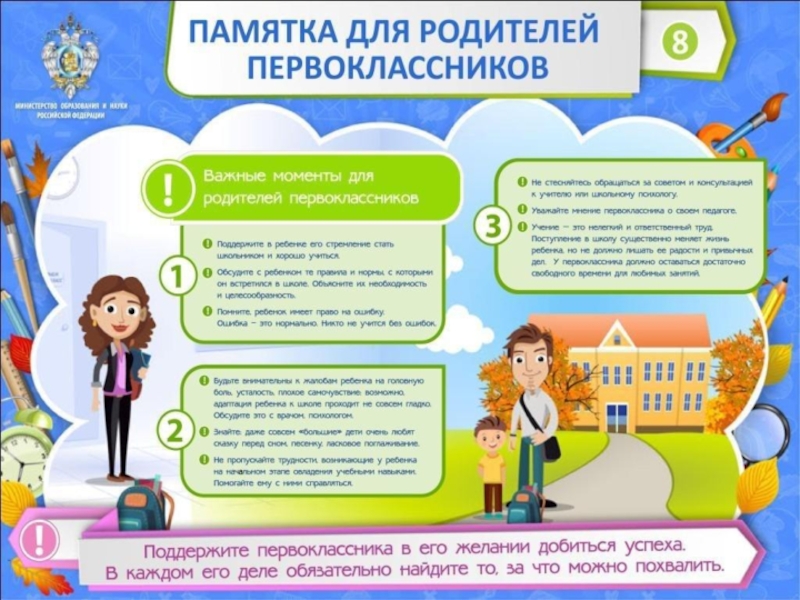 Презентация, доклад на тему Памятка для родителей первоклассников