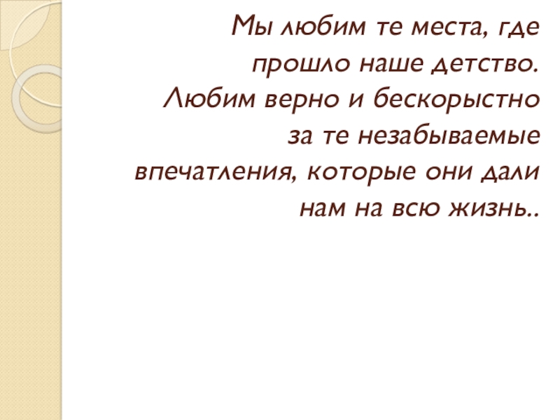 Слайд 2Мы любим те места, где прошло наше детство. Любим верно и бескорыстно