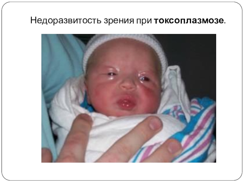 Слайд 9Недоразвитость зрения при токсоплазмозе.