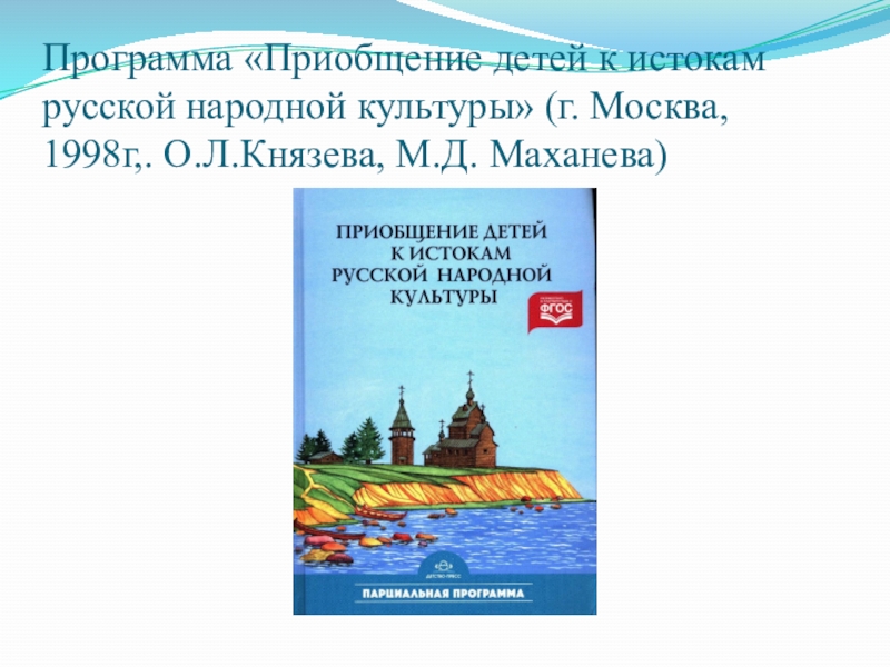 Слайд 7Программа «Приобщение детей к истокам русской народной культуры» (г. Москва, 1998г,.