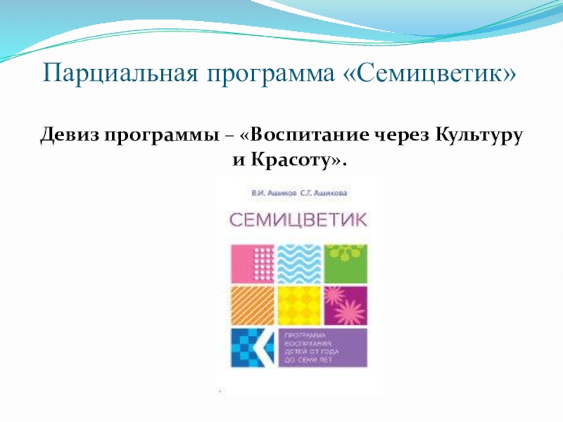 Парциальная программа «Семицветик»Девиз программы – «Воспитание через Культуру и Красоту».
