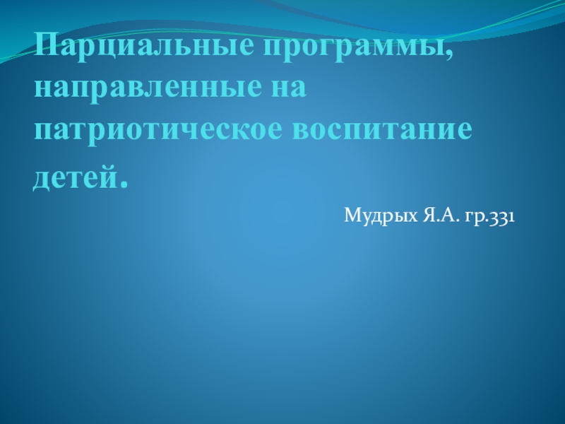 Парциальные программы, направленные на патриотическое воспитание детей.Выполнила: Мудрых Я.А.Группа:331