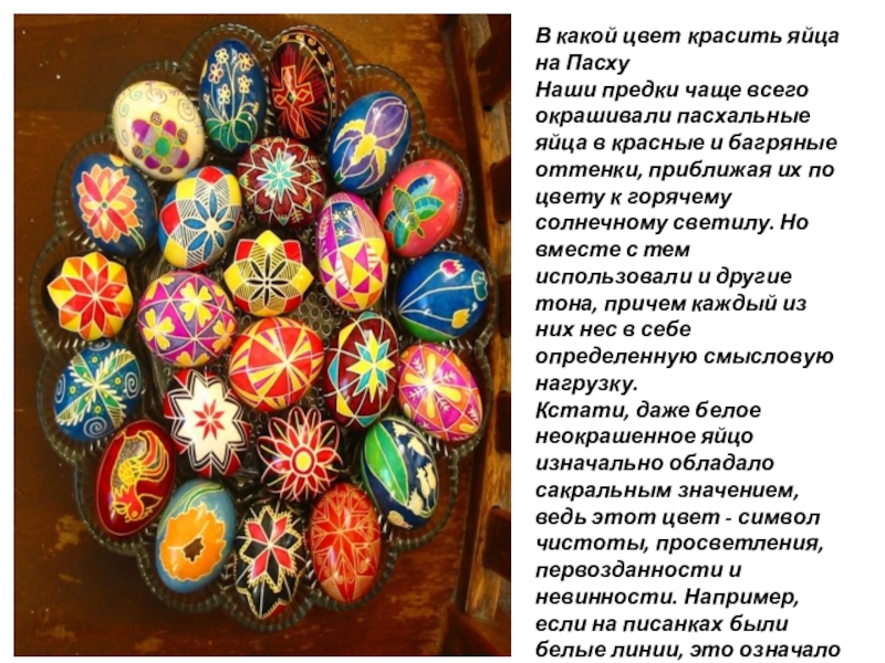 Слайд 2На Пасху принято красить яйца разными красками, но среди разноцветных яиц центральное