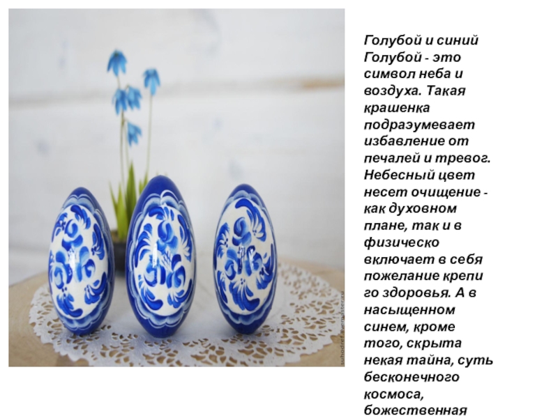 Голубой - это символ неба и воздуха. Такая крашенка подраэумевает избавление