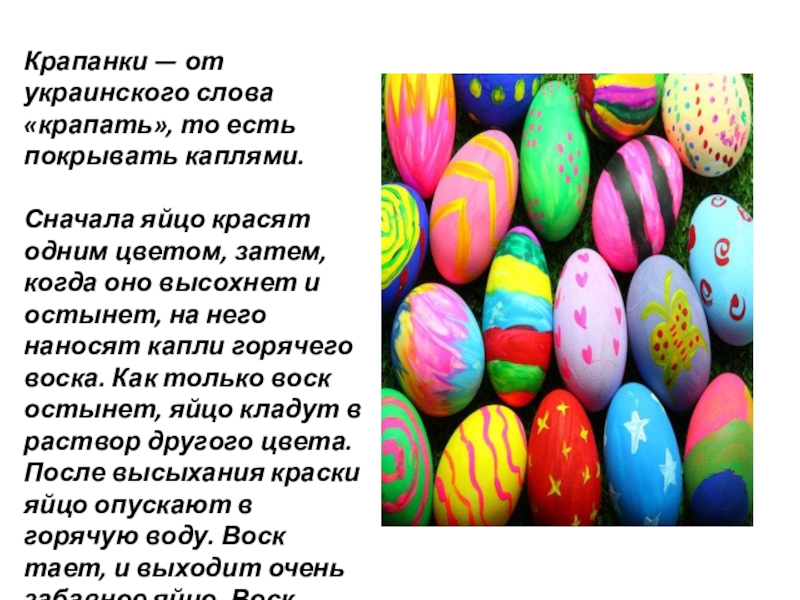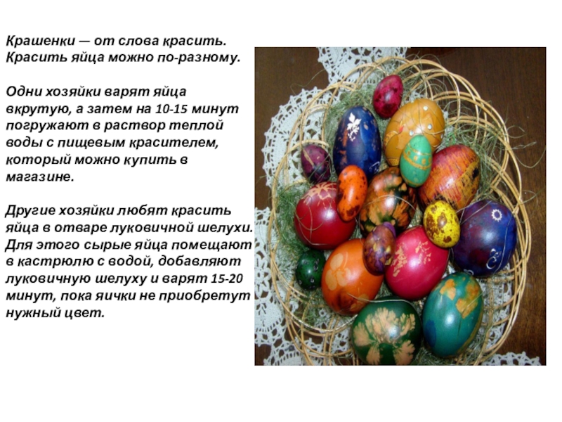 Слайд 5Крашенки — от слова красить. Красить яйца можно по-разному.