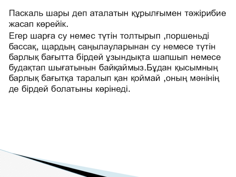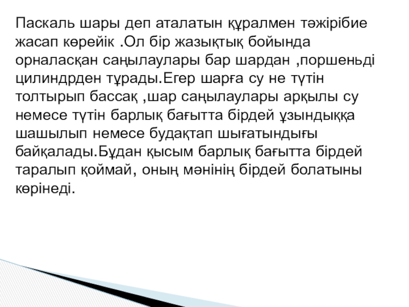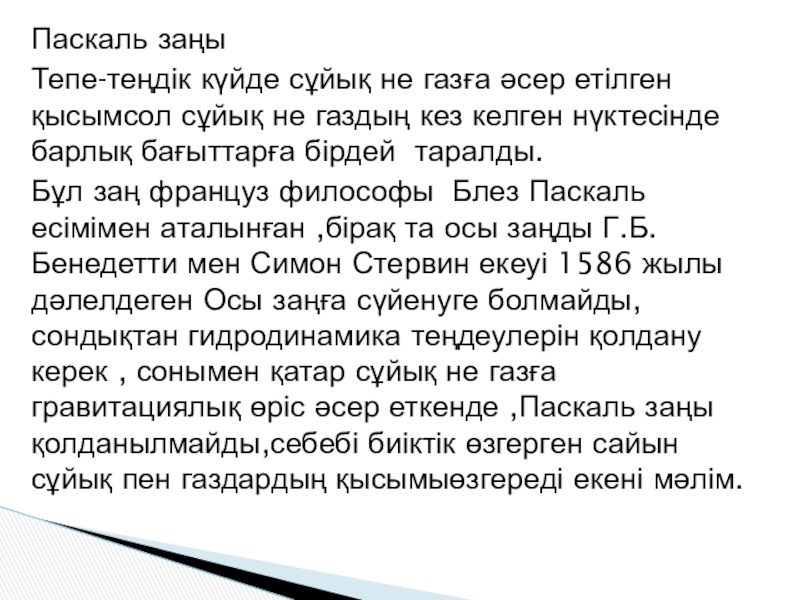Презентация, доклад на тему Паскаль заңы по предмету Техническая механика