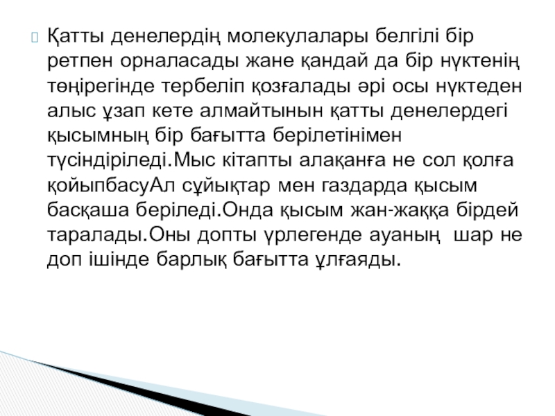 Слайд 3Қатты денелердің молекулалары белгілі бір ретпен орналасады жане қандай да бір