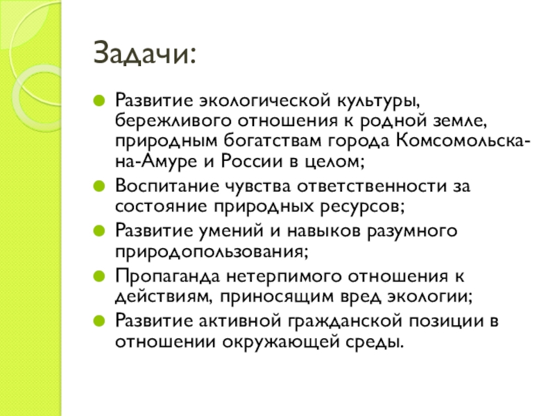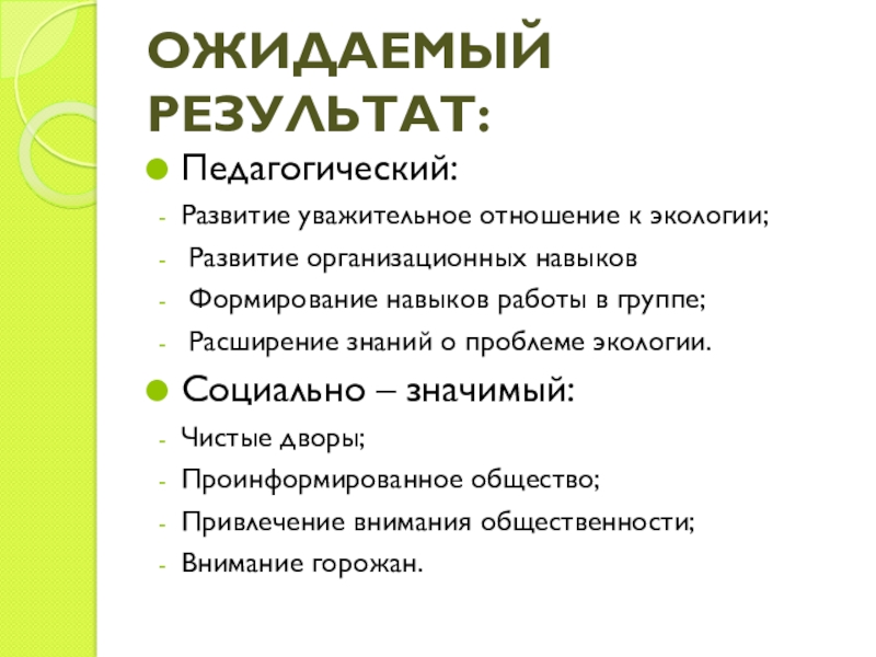 Педагогическая: развитие экологического воспитания у детей, подростков, молодежи и взрослых;