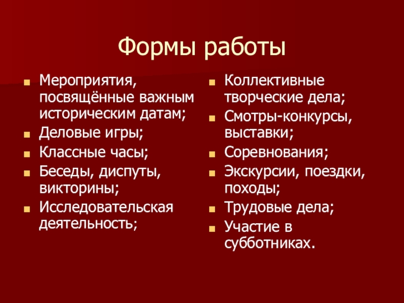 Коллективные творческие дела;