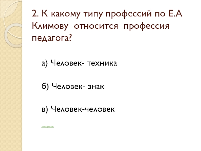 Слайд 52. К какому типу профессий по Е.А Климову относится профессия педагога?