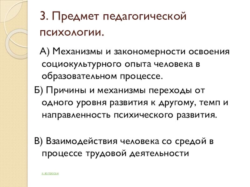 Слайд 63. Предмет педагогической психологии.