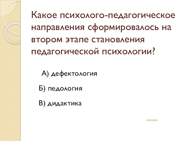 Слайд 9Какое принципиально новое направление появилось на третьем этапе становления педагогической психологии?