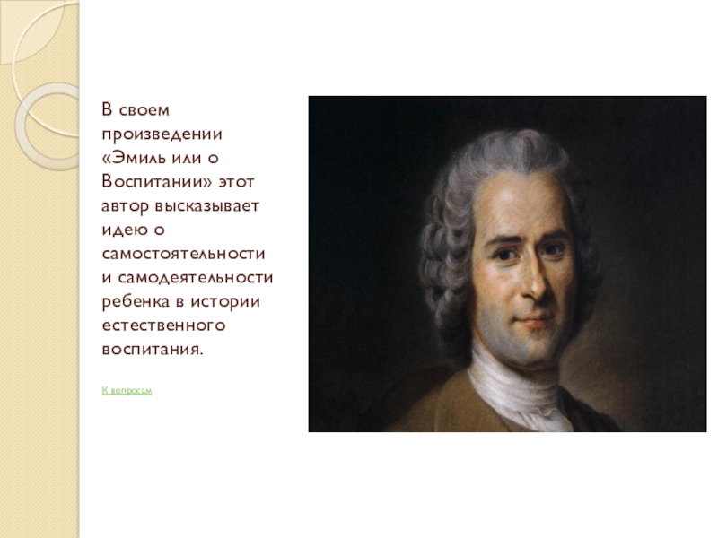 Слайд 11В своем произведении «Эмиль или о Воспитании» этот автор высказывает идею