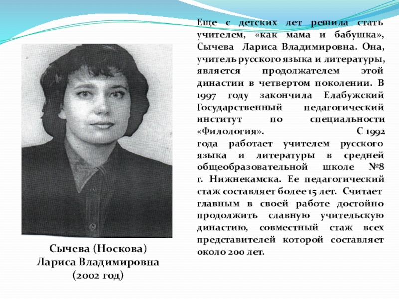 1 сентября 2003 год Сычева Л.В. со «своим» 8в классом