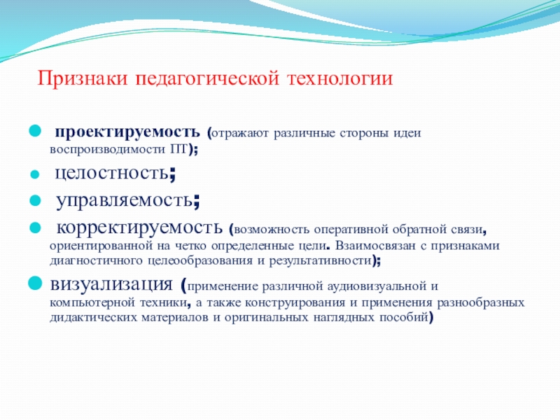 корректируемость (возможность оперативной обратной связи, ориентированной на четко определенные цели. Взаимосвязан с признаками диагностичного целеообразования и результативности);