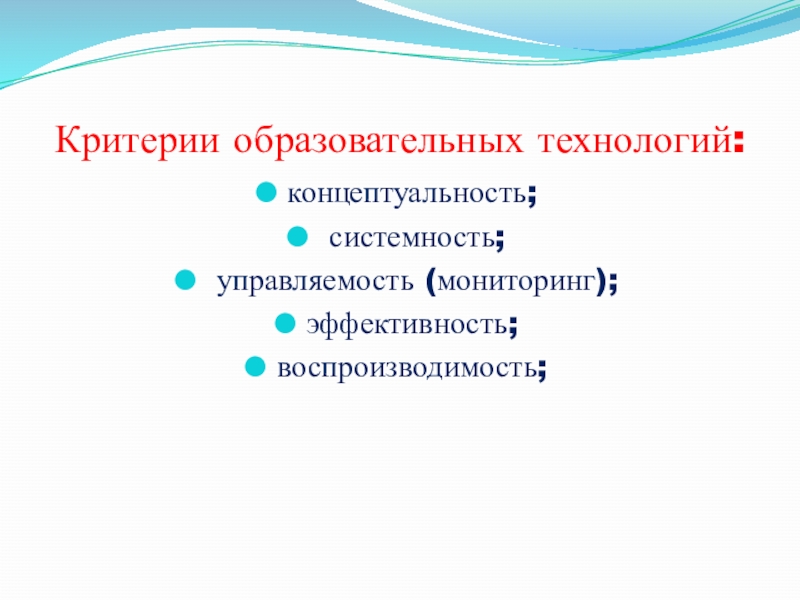 элементы педагогической технологии должны быть воспроизводимы любым учителем и должны гарантировать достижение планируемых результатов (гос. стандарта) всеми школьниками;