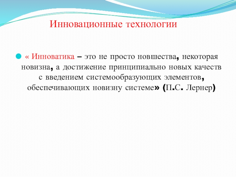Слайд 13« Инноватика – это не просто новшества, некоторая новизна, а достижение