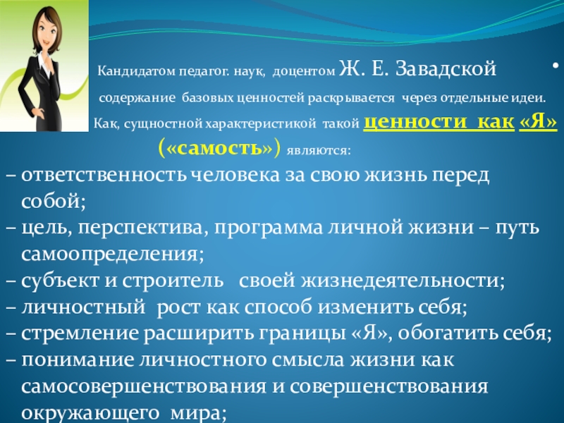 С педагогической точки зрения ценностями следует считать то, что полезно для жизни учащегося, что способствует развитию и совершенствованию его личности.