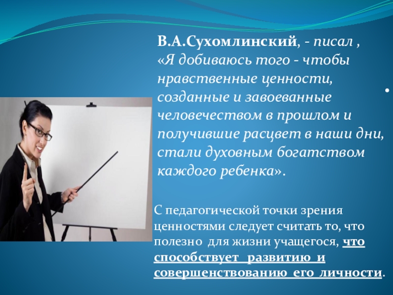В.А.Сухомлинский, - писал , «Я добиваюсь того