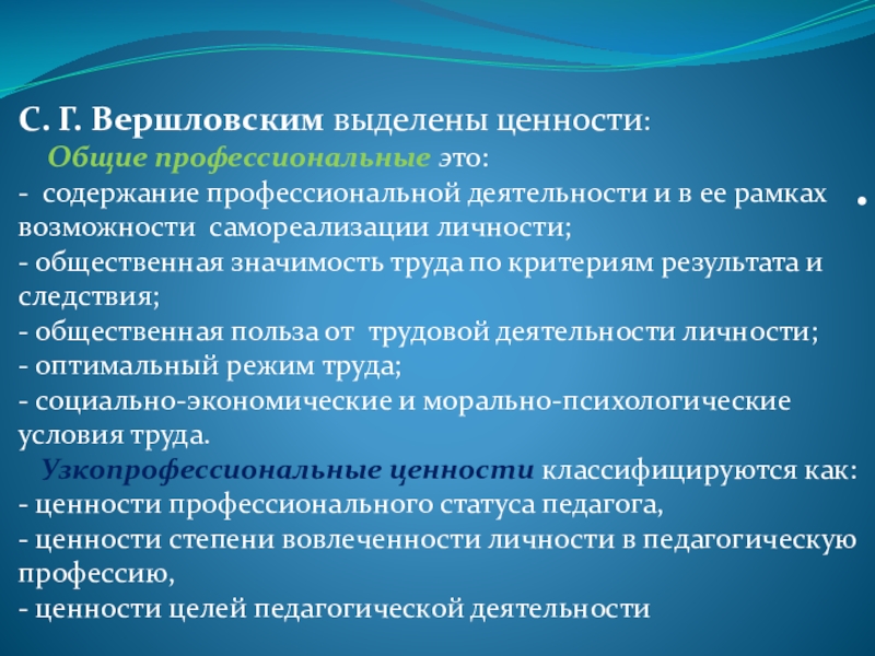 Среди профессионально-педагогических ценностей выделяют ценности: