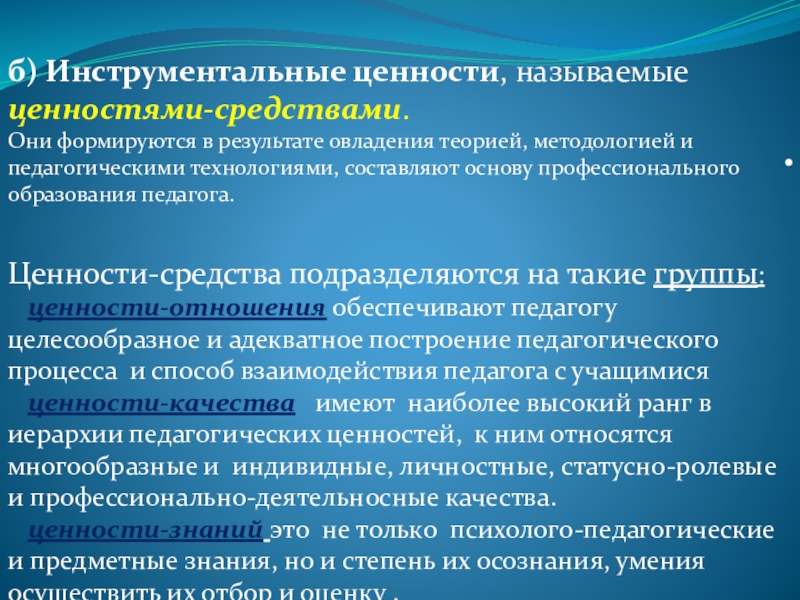 Ценности этого типа служат основанием развития личности и учителя, и учащихся.