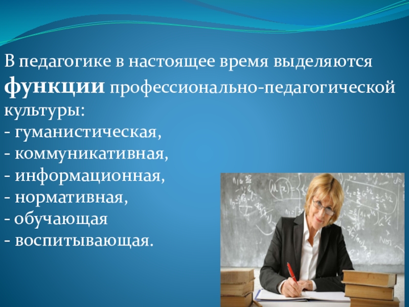 В педагогике в настоящее время выделяются функции профессионально-педагогической культуры: