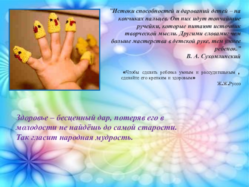 «Чтобы сделать ребенка умным и рассудительным , сделайте его крепким и здоровым»