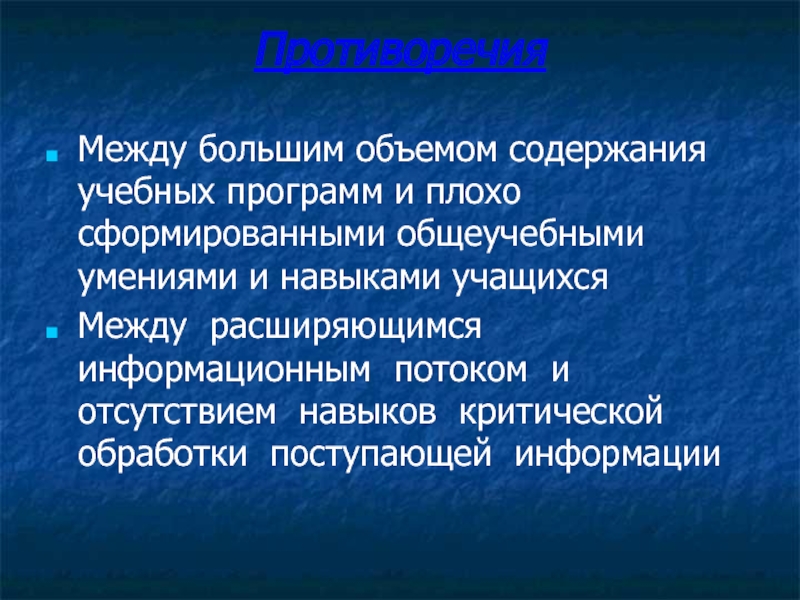 Между большим объемом содержания учебных программ и плохо сформированными общеучебными умениями