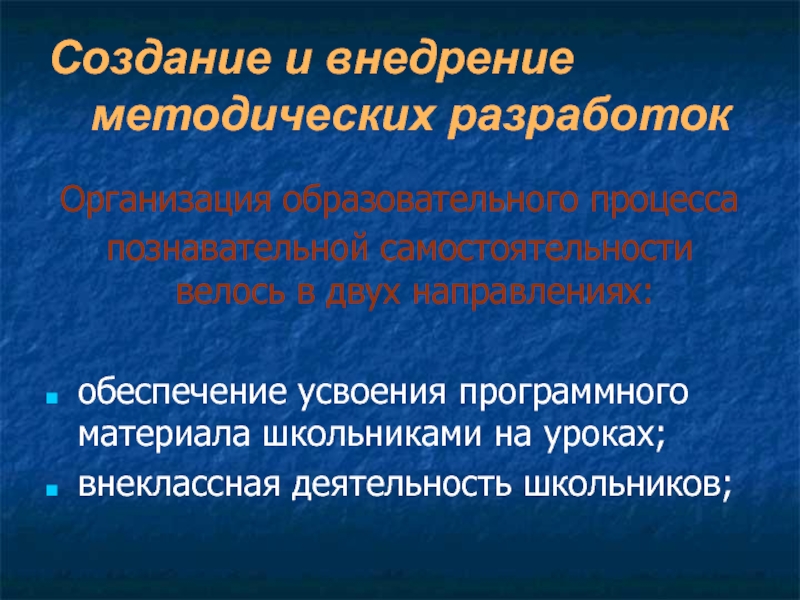 внедрение методических разработок, направленных на развитие познавательной самостоятельности различного возраста обучаемых