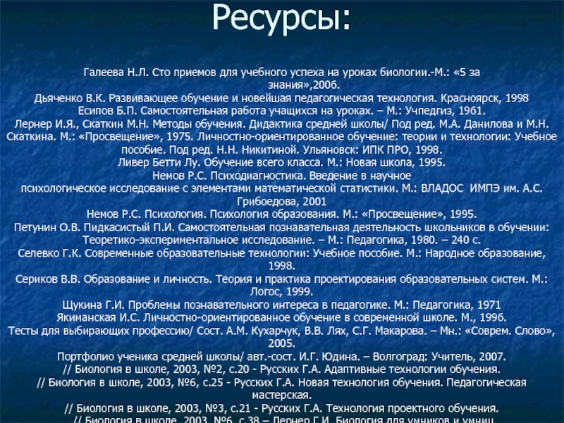 // Биология в школе, 2003, №3, с.21 - Русских Г.А. Технология проектного обучения.