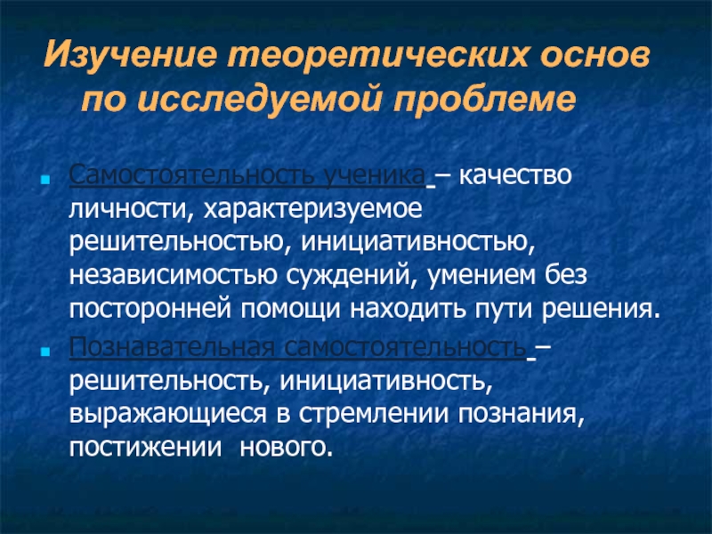 Слайд 14Самостоятельность ученика – качество личности, характеризуемое решительностью, инициативностью, независимостью суждений, умением