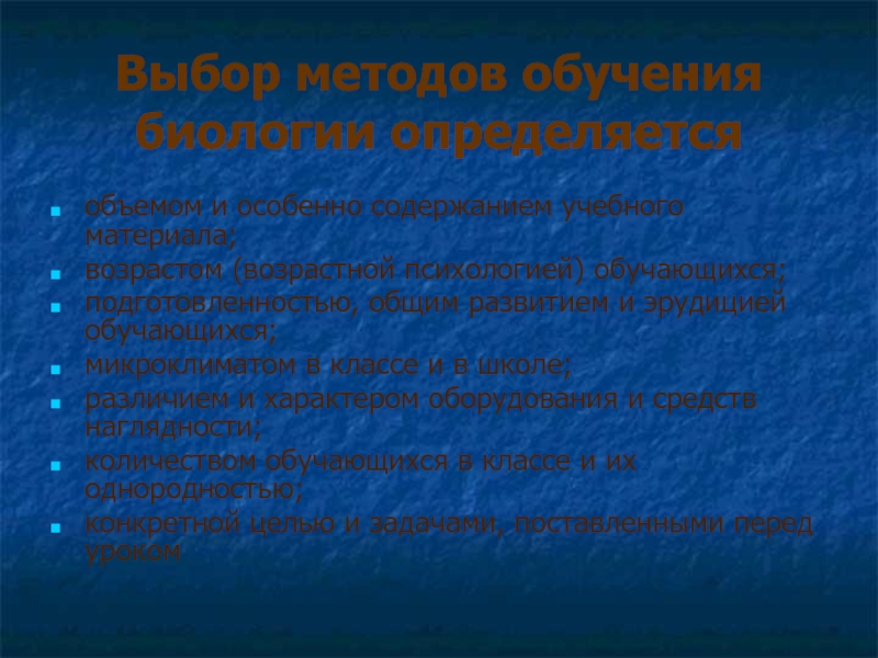 Слайд 22Выбор методов обучения биологии определяется