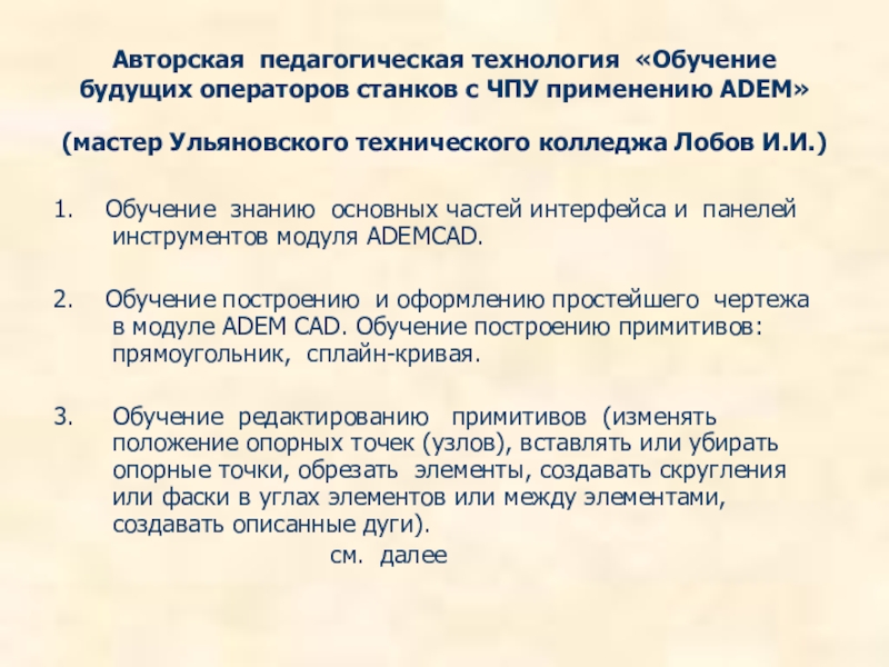 1. Обучение знанию основных частей интерфейса и панелей инструментов модуля ADEMCAD.