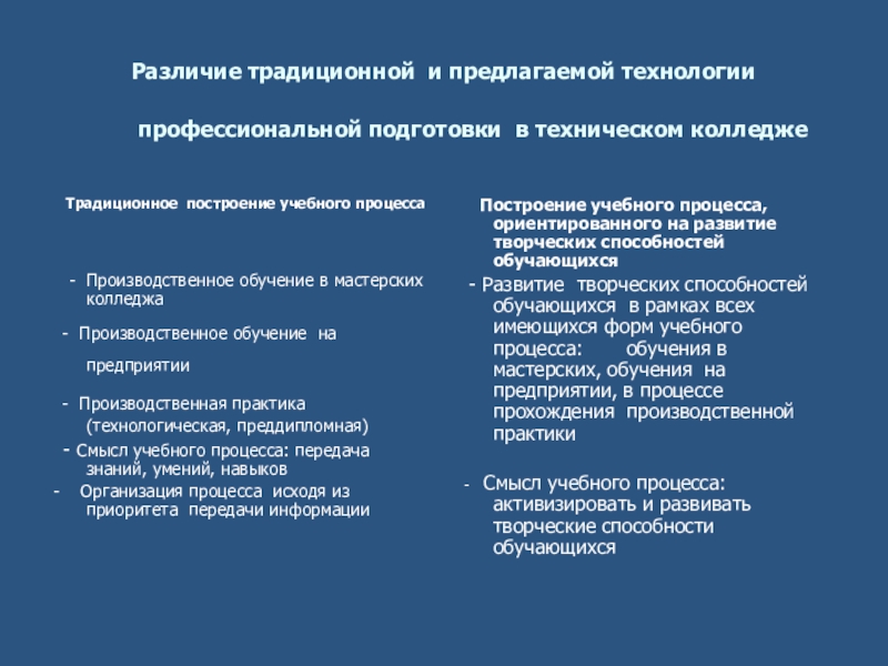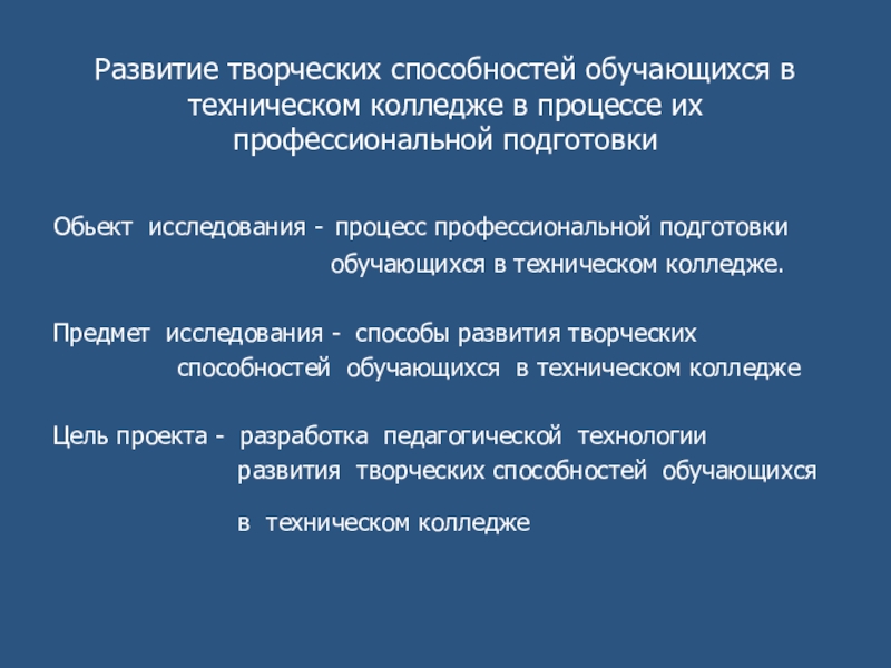 - Развитие творческих способностей обучающихся в рамках всех имеющихся форм учебного процесса: обучения в мастерских, обучения на предприятии, в процессе прохождения производственной практики